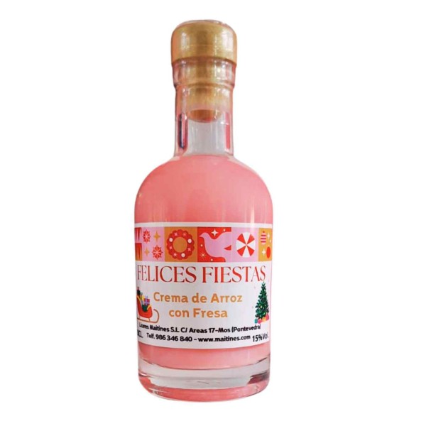 Aguardiente destilada a 15% Vol. macerada con base lactea, arroz y fresas. Presentación en 70cl. o también 3L.