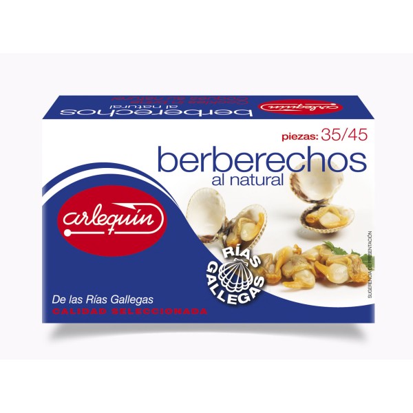 Berberechos al natural de las Rías Arlequín tamaño mediano extra 35/45 piezas lata de 120g.