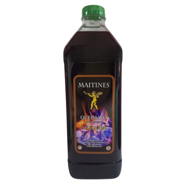 Licor de Queimada Gallega Selección Maitines envasado en Pet de 2 litros , licor exquisito elaborado con aguardiente de orujo, azúcar, piel de limón, granos de café y manzana.