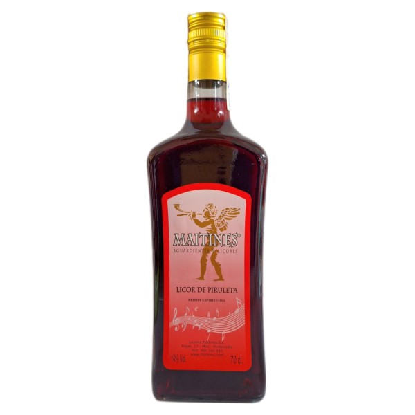 Aguardiente destilada a 14% Vol. macerada con sirope de piruleta.